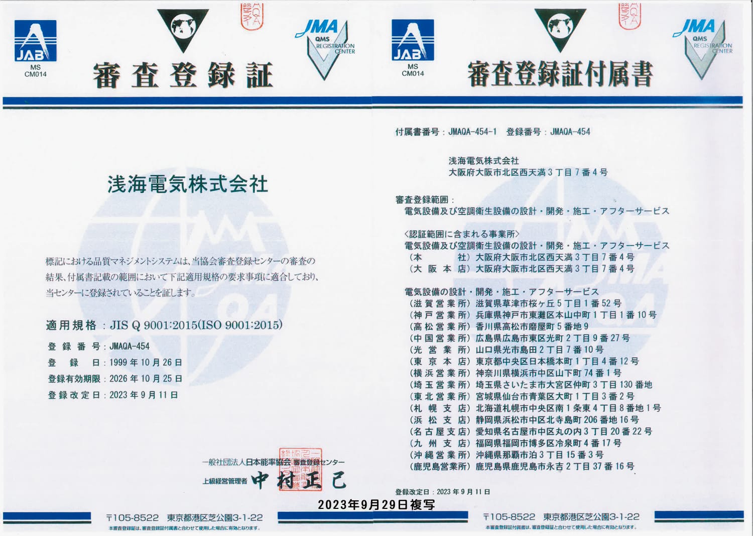 - JIS Q 9001:2015 (ISO 9001:2015)